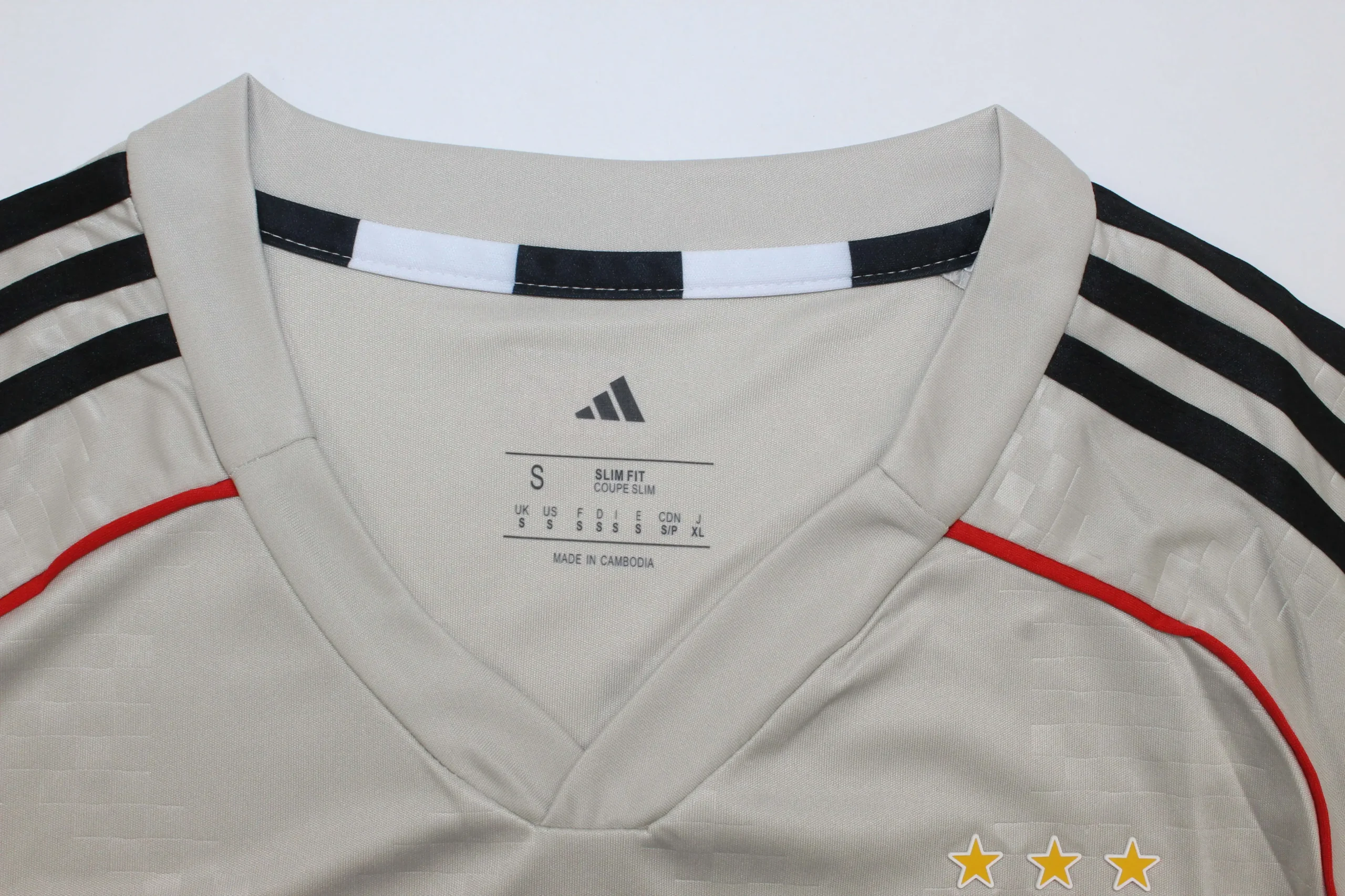 Las fotos de los productos son orientativas. Todos los productos vienen por defecto sin serigrafia, sin parches y sin leyenda. Para añadirlo se tendrá que elegir las opciones y escribir lo que se quiere añadir en los cuadrados que se abren al elegir las opciones de »Parches» o »Serigrafía». Para añadir las leyendas del pecho (Por ejemplo, de una final o un partido. Solamente las que aparecen en las fotos) se tendrá que escribir en el apartado de »Parches»
